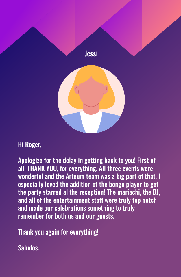 Your event is important to ARTEUM, and we are with you throughout the planning process.